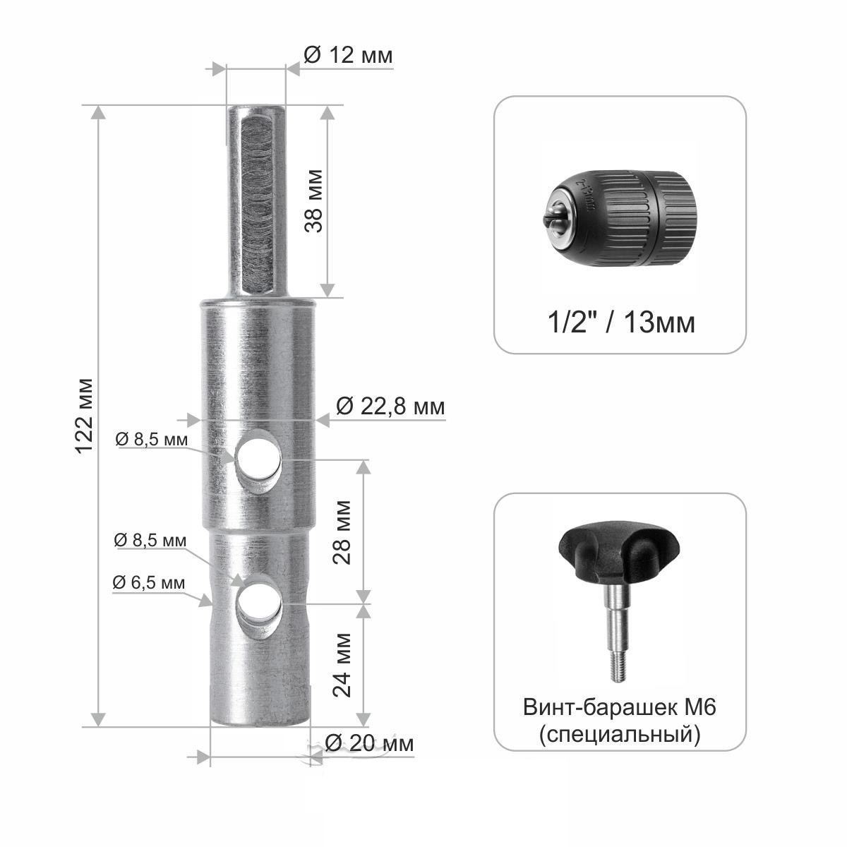 Адаптер ТОНАР АШ.2023 универсальный под шуруповерт, d выходного вала 20/23 мм (T-ASH2023)