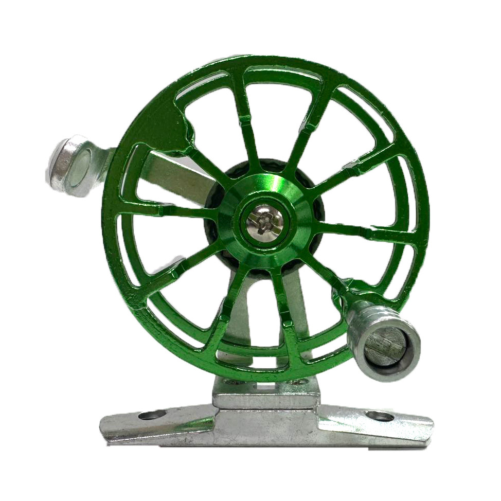Катушка инерционная металлическая, зеленая