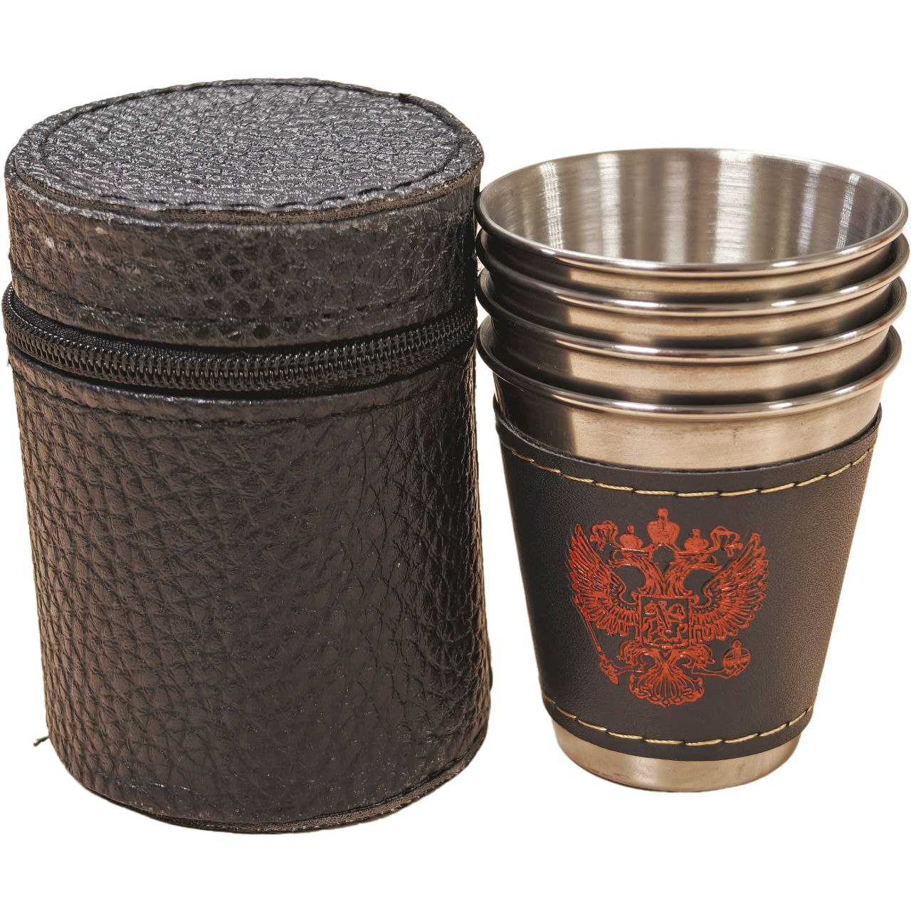 Набор походных стопок в футляре "Герб России", 75мм